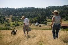 I wish you could be here tonight at the Saxapahaw General Store. It's balmy, everyone is enjoying wine and under their chairs are bags of produce from the farmers' market, and at the good-time table next to me, the boy who just rode his bike across NC is next to the young man reading a thick book called "meat" because he works at Braeburn Farms with the cattle, next to Eliza who works the hogs. There are those of us here doing our internet work, since this is the only wifi spot for miles around, and those who are here for the first time to be at the mill by the river where things are hoppin'....it's great energy. I finished canning 12 jars of Kudzu jelly this week and the kids love it. They have said a few times, "Hey Mom, we made jelly!" Your image is the iconic New Farmer. This store was the coke and moonpie stop a year ago, and now it has both that and tons of local options along with a fantastic chef. How could we have a chance at some Oregon artisnal wines??